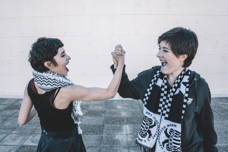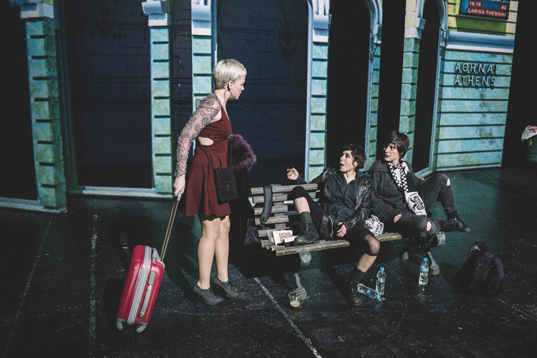 Σταθμός Λαρίσης. Ακούγεται ο ποδοσφαιρικός αγώνας Ολυμπιακού-ΠΑΟΚ. Σε ένα παγκάκι δύο νέες γυναίκες περιμένουν… συναντιούνται… ονειρεύονται… ελπίζουν… ταξιδεύουν με το τρένο του ΠΑΟΚ, όπου κανένας δεν τους ζητάει εισιτήριο.