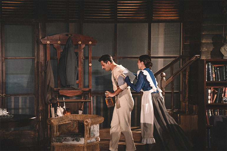 Νύχτα, ομίχλη, ουίσκι… Η Μαίρη, ο Τάιρον, ο Τζέιμυ κι ο Έντμοντ… κι οι χαμένες ελπίδες τους, εγκιβωτισμένες σε ένα σπίτι φτιαγμένο με τα πιο πρόχειρα υλικά γεμάτο ανασφάλεια, πασχίζουν για την ένωση οίκου και γένους στην παραλιακή εξοχή… σαν κύματα τα άπιαστα όνειρα μιας ζωής νοτίζουν το πρόσωπό τους. Κάτω απ’ τα ρούχα εποχής, αρρωστημένοι ψυχισμοί σε δρύινο τραπέζι, θολώνουν τα ποτήρια καθώς αλληλοσυγκρούονται προπόσεις… υπέρ υγείας.