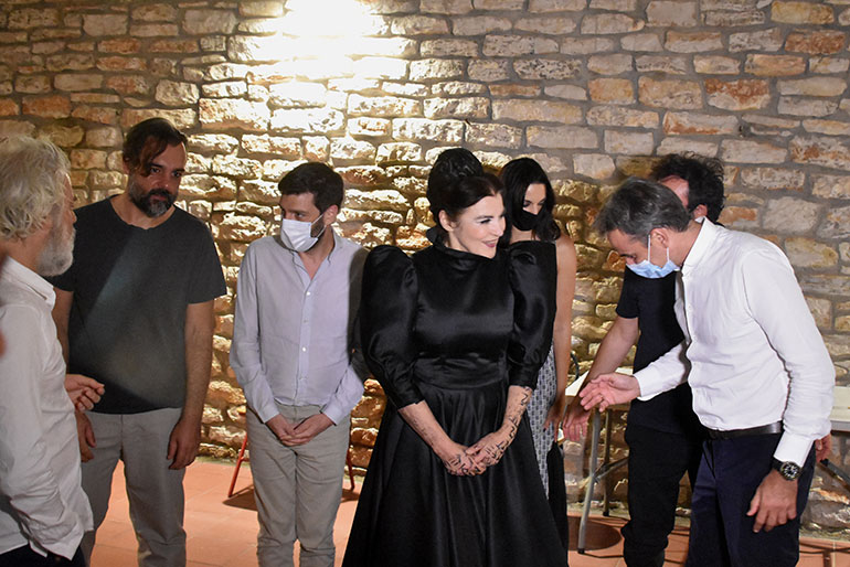 Ο πρωθυπουργός, που συνοδευόταν από την υπουργό Πολιτισμού και Αθλητισμού Λίνα Μενδώνη, όπως αναφέρουν κυβερνητικές πηγές, είχε την ευκαιρία να συνομιλήσει με τους συντελεστές της παράστασης.