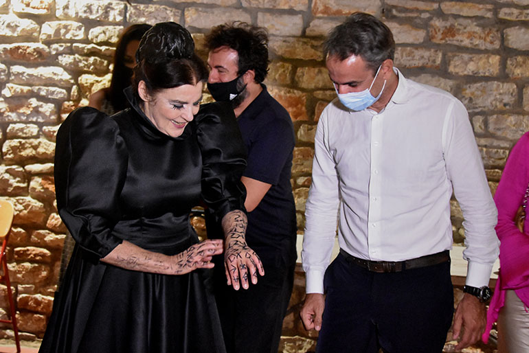 Την τραγωδία «Πέρσες» του Αισχύλου στο αρχαίο θέατρο της Επιδαύρου, την οποία ανέβασε το Εθνικό Θέατρο, παρακολούθησαν ο πρωθυπουργός Κυριάκος Μητσοτάκης και η σύζυγός του Μαρέβα.