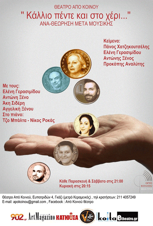 Το θέατρο Από Κοινού κλείνει τον έναν χρόνο λειτουργίας του και το γιορτάζει προσφέροντάς εισιτήρια των 5ευρώ για την παράσταση «Κάλλιο πέντε και στο χέρι…» που κάνει πρεμιέρα την Παρασκευή 27 Οκτωβρίου!