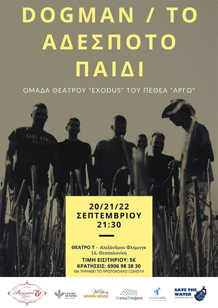 Έπειτα από ενάμιση χρόνο κλειστών θεάτρων, το Θέατρο Τ επιστρέφει και, σε μία κρίσιμη περίοδο για την κοινωνία και τους καλλιτέχνες, ανοίγει αυλαία φιλοξενώντας την performance «Dogman – Το αδέσποτο παιδί» της ομάδας Exodus του Προγράμματος Εναλλακτικής Θεραπείας Εξαρτημένων Ατόμων «Αργώ». Η performance παρουσιάζεται στη σκηνή του Τ για τρεις βραδιές, τη Δευτέρα 20, την Τρίτη 21 και την Τετάρτη 22 Σεπτεμβρίου στις 21:30 και όλα τα έσοδά της θα διατεθούν στην οικονομική ενίσχυση του Συλλόγου Φίλων «Αργώ».