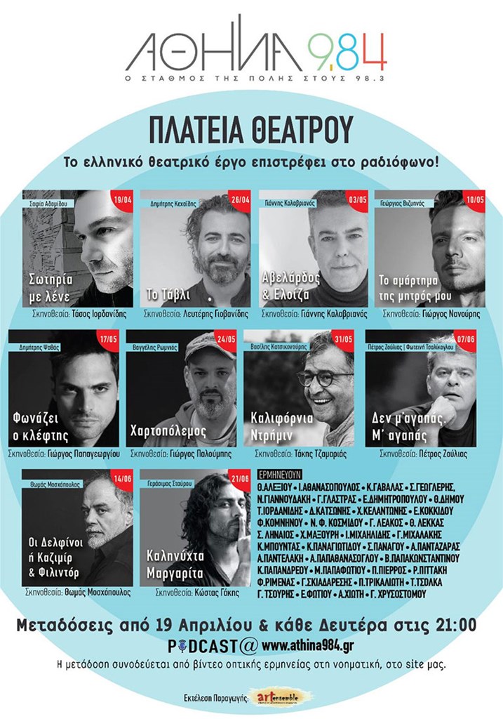 Aπό σήμερα, Δευτέρα 19/4 και για 10 εβδομάδες, 10 ελληνικά έργα παρουσιάζονται δωρεάν από τον Αθήνα 9.84, θυμίζοντάς μας τη μαγεία του θεάτρου μέσα από το ραδιόφωνο!