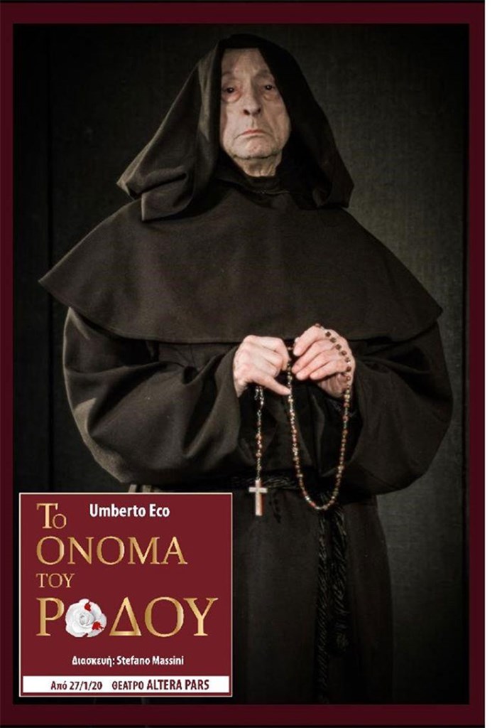 Η παράσταση το «Όνομα του Ρόδου», βασισμένη στο ομότιτλο μυθιστόρημα του Ουμπέρτο Έκο, έρχεται για πρώτη φορά στην Ελλάδα, από τις 27 Ιανουαρίου 2020, στο θέατρο Altera Pars, σε σκηνοθεσία Michael Seibel.