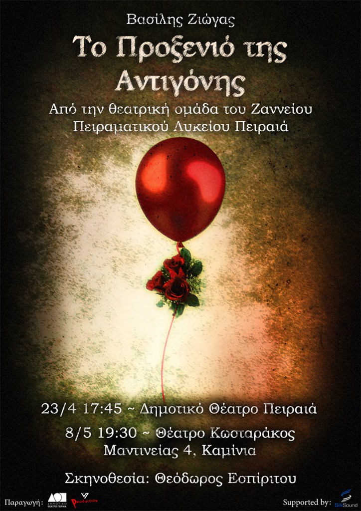 Η θεατρική Ομάδα του Ζαννείου Πειραματικού Λυκείου Πειραιά σε συνεργασία με τη Vape Productions παρουσιάζει «Το προξενιό της Αντιγόνης» τη Δευτέρα 23 Απριλίου 2018 στο Δημοτικό θέατρο Πειραιά.