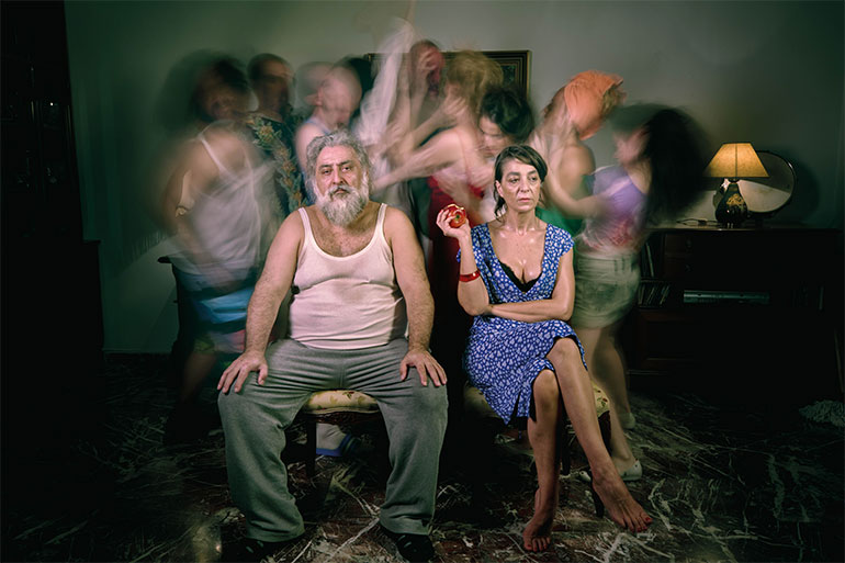 Ένα μικροαστικό διαμέρισμα που στενάζει, ένα a/c που δεν δουλεύει. Μια τηλεόραση που παίζει αδιάκοπα. Τσιγάρα και φραπές. Το λαϊκό άσμα ενός πατέρα καφετζή, η ταραγμένη φωνή μιας μάνας. Το ρυθμικό παραλήρημα ενός σεξιστή γιου, η μεγαλοπρεπής άρια του κουνιάδου. H σκληρή γλώσσα και τα φλέγοντα ερωτήματα αναδιατυπώνονται με μουσικούς όρους: «Τι θα κάνεις με τη Λίντα, Βαγγέλη;»