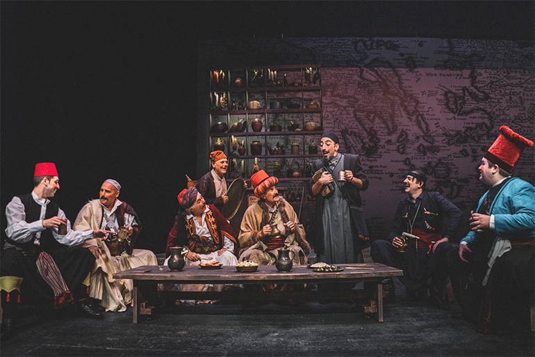 Θα το επωμιστούν επί σκηνής υπό το άγρυπνο βλέμμα του Αστυνόμου Κοσμά Ζαχάρωφ, ως Ανατολίτης ο Τάκης Χρυσικάκος, ως Χιώτης ο Ηλίας Μπερμπέρης, Αρβανίτης ο Αλέξανδρος Μούκανος, Κρητικός ο Κωνσταντίνος Χατζησάββας και ως Κύπριος ο Βασίλης Παπαδόπουλος.