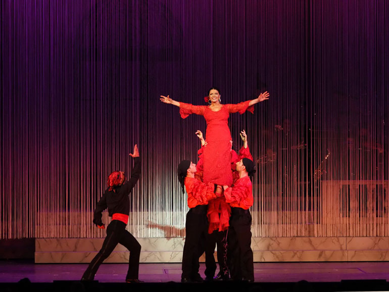 Η συνεργασία μας όντως ξεκίνησε πριν από έξι χρόνια, οπότε πρωτοπαρουσιάστηκε στο Θέατρο Badminton μ΄ έναν διαφορετικό θίασο. Ίσως το στυλ τότε ήταν λίγο πιο παλιό. Τώρα ήταν πιο νέοι αλλά εξίσου ταλαντούχοι ηθοποιοί με πολύ καλές φωνές. Νομίζω ότι ήταν μία από τις ωραιότερες παραστάσεις. Όλα ήταν εξαιρετικά και τα σκηνικά και τα κοστούμια. Και δεν μιλάω για τα δικά μου τα οποία είναι πανάκριβα. Αυτά που βγαίνω στο φινάλε με το μαγιό και τα στρας είναι από τη Μαντάμ Φεβριέ από το Παρίσι. Υπήρξα πάρα πολύ σπάταλη στη δουλειά μου. Ξόδεψα πάρα πολλά χρήματα κι έχω ένα βεστιάριο που είναι για μουσείο και πραγματικά είναι κρίμα να μην γίνει κάτι…