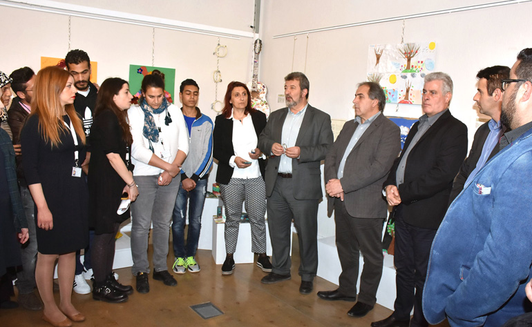 Η φιλοξενία της παιδικής αυτής έκθεσης εντάσσεται στο πλαίσιο του πυκνού πλέγματος δράσεων του δήμου Νεάπολης-Συκεών για τους πρόσφυγες, που περιλαμβάνει τη φιλοξενία τους σε ειδικά διαμερίσματα, την εκπαίδευσή τους σε σχολεία του δήμου αλλά και τη δημιουργική απασχόλησή τους. Με την πρωτοβουλία αυτή, ο δήμος Νεάπολης-Συκεών προσφέρει τη δυνατότητα και την ευκαιρία στα μεγάλα θύματα του πολέμου, όπως είναι τα προσφυγόπουλα, να εκφράσουν τις σκέψεις και τα συναισθήματά τους ελεύθερα, να επικοινωνήσουν με την κοινωνία και να στείλουν τα δικά τους μηνύματα.