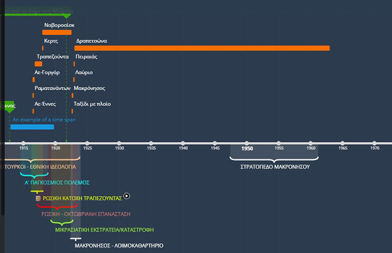Ο κ. Κασκαμανίδης παρουσίασε, εξάλλου, μέσα ψηφιακής αφήγησης, όπως οι χρονογραμμές, οι ψηφιακοί διαδραστικοί χάρτες και οι εφαρμογές επισημείωσης (σχολιασμού πάνω σε έναν χάρτη).