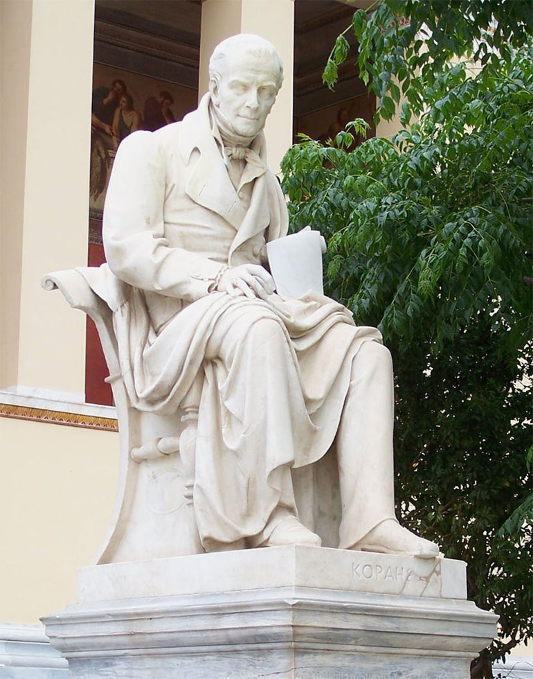Ο Χιώτης γιατρός και λόγιος Αδαμάντιος Κοραής είναι μία από τις μεγαλύτερες φυσιογνωμίες του νεότερου ελληνισμού. Πνευματικός αρχηγός της Ελληνικής Επανάστασης, ισάξιος του Ρήγα Φεραίου και του Διονυσίου Σολωμού, είναι ο μεγάλος δάσκαλος του γένους, εισηγητής και κύριος εκφραστής του Διαφωτισμού στον ελληνικό χώρο.
