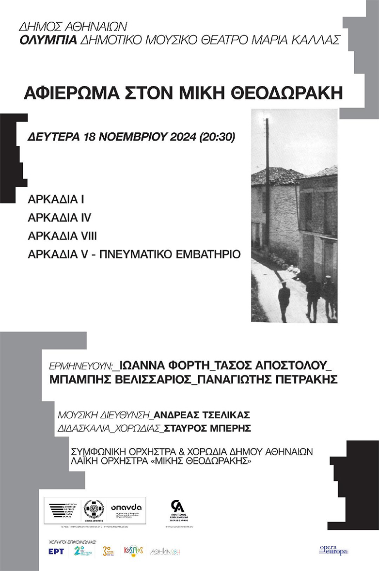 Στο πλαίσιο των εορτασμών για τα πενήντα χρόνια από την πτώση της Χούντας και την Αποκατάσταση της Δημοκρατίας, η Λαϊκή Ορχήστρα «Μίκης Θεοδωράκης» μαζί με τη Συμφωνική Ορχήστρα και τη Χορωδία Δήμου Αθηναίων υπό τον Ανδρέα Τσελίκα συμπράττουν με εκλεκτούς ερμηνευτές και πραγματοποιούν αφιέρωμα στον κορυφαίο Έλληνα συνθέτη Μίκη Θεοδωράκη.