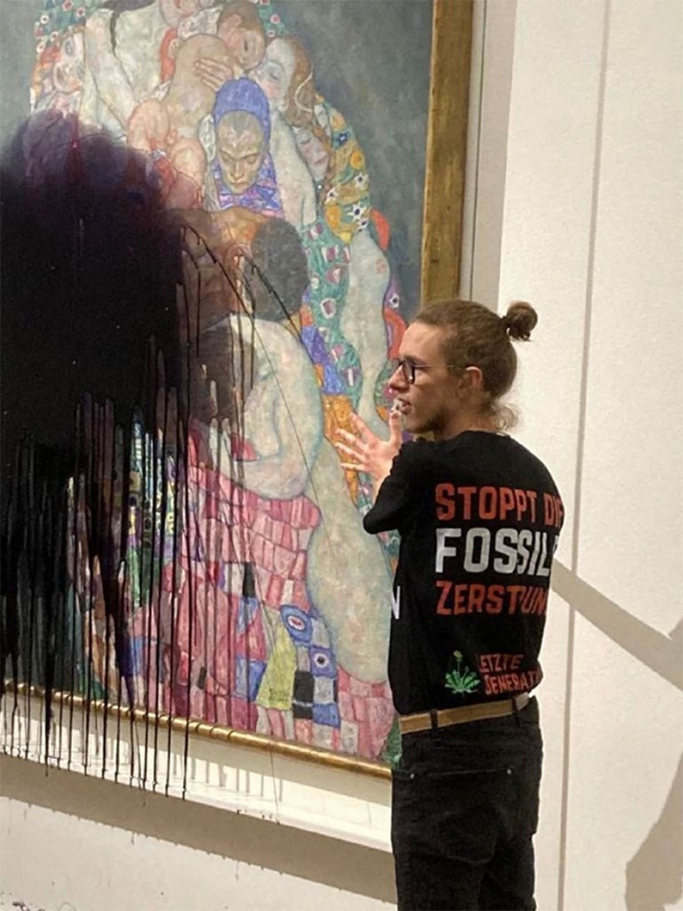 Menschen der Letzten Generation haben heute im Leopold Museum das Klimt-Gemälde “Tod und Leben” mit Öl überschüttet. Neue Öl- und Gasbohrungen sind ein Todesurteil für die Menschheit. pic.twitter.com/4QKAklB9Af