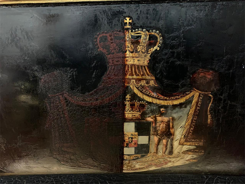 Οικόσημο από βασιλική άμαξα πριν και μετά τις εργασίες συντήρησης