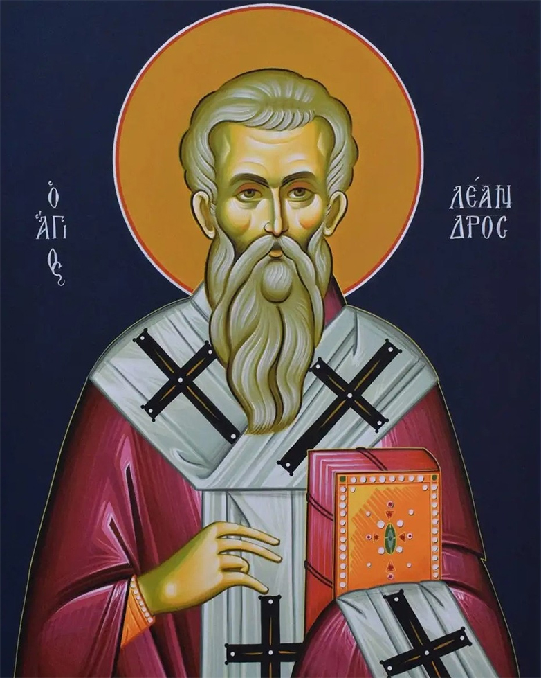 Ο Άγιος Λέανδρος, Επίσκοπος Σεβίλλης της Ισπανίας, διδάσκαλος της Εκκλησίας και φωτιστής των Ισπανών, έζησε τον 6ο μ.Χ. αιώνα και ήταν γόνος αριστοκρατικής οικογενείας. Ο πατέρας του ήταν δούκας και καταγόταν από βυζαντινή γενιά, ενώ η μητέρα του ήταν πρωτότοκη κόρη του Βησιγότθου βασιλέως Λεβιγκίντ, που βασίλευε στην Σεβίλλη, την πρωτεύουσα του βασιλείου των Βησιγότθων.