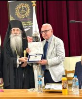 Ο σεβασμιώτατος μητροπολίτης Πειραιώς κκ Σεραφείμ τόνισε μεταξύ άλλων: «Θέλω να εκφράσω τη βαθιά μου ευγνωμοσύνη στον αγαπητό, εξαίρετο Σκηνοθέτη, Σεναριογράφο, Λόγιο κύριο Μανούσο Μανουσάκη, ο οποίος μας κάνει την τιμή σήμερα να είναι κοντά μας. Πολύ πρόσφατα μας χάρισε με το «ΚΟΚΚΙΝΟ ΠΟΤΑΜΙ»  την αυτοσυνειδησία του γένους μας. Όλο το έργο του είναι μία προσπάθεια να κοινωνήσει ο άνθρωπος με την Αλήθειά του. Τον συγχαίρουμε και τον ευχαριστούμε. Εύχομαι να δώσει ακόμα πάρα πολλά που έχει μέσα στη καρδιά του, γιατί όπως είπαμε η Τέχνη είναι μία απευθείας γραμμή με τον Ουρανό. Και βέβαια ο Γιώργος μας, ο Γιώργος Τσούκαλης δεν είναι πλέον απλά ο δικός μας άνθρωπος, αλλά ο  εξαίρετος συνεργός στο έργο του Ωδείου μας, της Εκκλησίας και της Μητροπόλεώς μας. Τον ευχαριστούμε και πάντα να είναι άξιος των αρχών που υπηρετεί εδώ και χρόνια».
