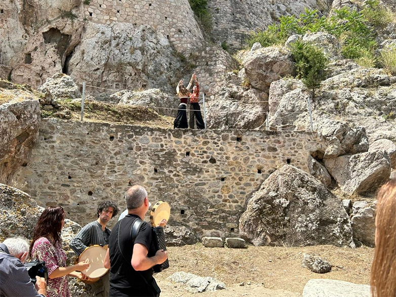 H μουσική ομάδα Encardia παρουσίασε τραγούδια και χορούς από τις ελληνόφωνες περιοχές του Ιταλικού Νότου, με μουσικό περίπατο μέχρι το Ιερό της Αφροδίτης και του Έρωτα