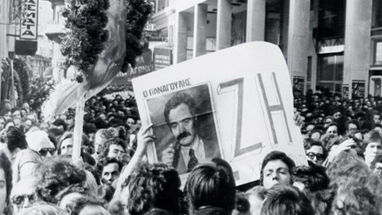 Η κηδεία του γίνεται στις 5 Μαΐου και μεταβάλλεται σε πάνδημο δημοκρατικό συλλαλητήριο, ενώ το βασικό σύνθημα, «Ζει», που αντηχεί στην Αθήνα θα γραφτεί και στους περισσότερους δρόμους της πόλης: Χαρακτηριστικό είναι ότι στην κηδεία του δεν παρίσταται ο Πρόεδρος της Δημοκρατίας, ο πρωθυπουργός, ενώ οι ένοπλες δυνάμεις δεν στέλνουν επίσημο εκπρόσωπο.