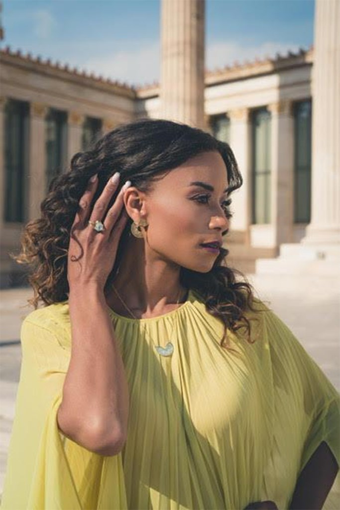 H ωραία «Ελληνίδα» που αγαπήσαμε για τη φωνή της, φοράει ως σύγχρονη θεά την πρώτη συλλογή Ancient Goddess των κοσμημάτων που πωλούνται on line.