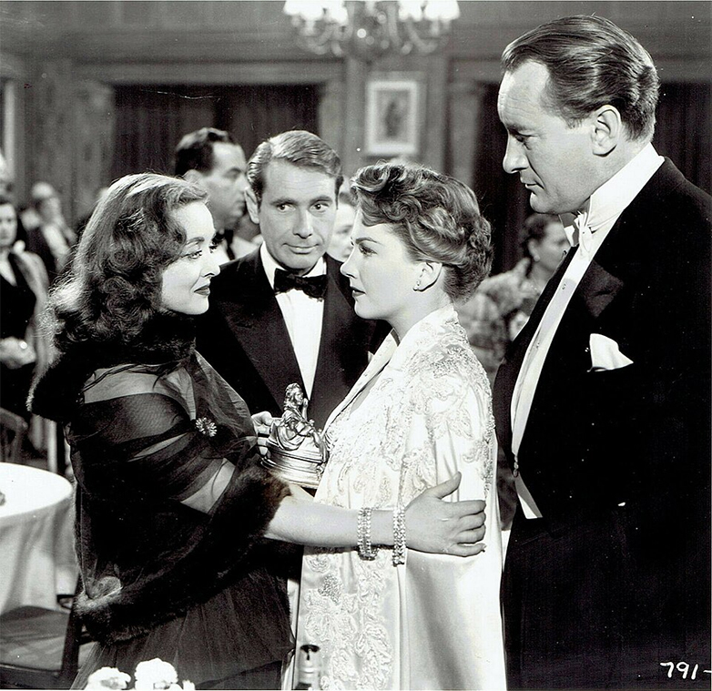 Η Μπάξτερ (τρίτη από αριστερά) με την Μπέτι Ντέιβις, τον Γκάρι Μέριλ και τον Τζορτζ Σάντερς (δεξιά) στην ταινία Όλα για την Εύα (1950)