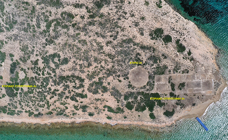 Πλην των παραπάνω, αποκαλύφθηκε η κάτοψη μίας ακόμη κυκλικής κατασκευής διαμέτρου 17μ (πλέον είναι ορατές τρεις πάνω στη νησίδα και μία στο Δεσποτικό) (Εικ.16). Η κακή κατάσταση διατήρησής της δεν επιτρέπει επί του παρόντος τη διεξαγωγή συμπερασμάτων για τη χρήση της.