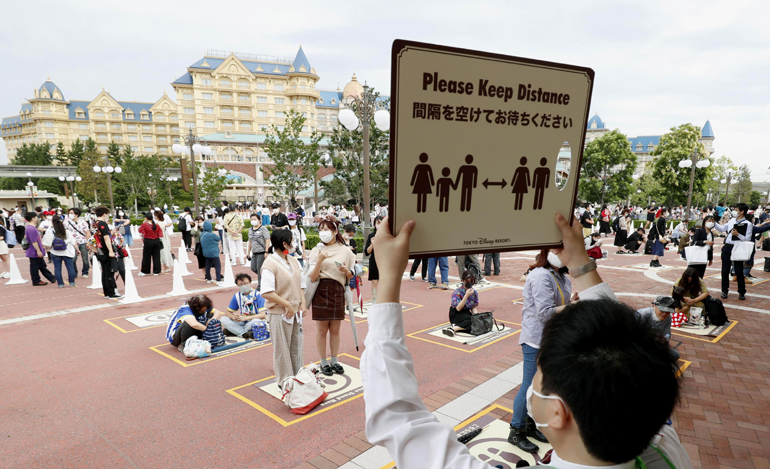 Το Τόκιο, που έχει καταγράψει τον υψηλότερο αριθμό κρουσμάτων στην Ιαπωνία, επέτρεψε στα μέσα Ιουνίου στα θεματικά πάρκα να ανοίξουν και πάλι –αργότερα σε σχέση με κάποιες άλλες περιοχές– έπειτα από την άρση από την κυβέρνηση της εθνικής κατάστασης συναγερμού που είχε επιβληθεί στο τέλος Μαΐου.
