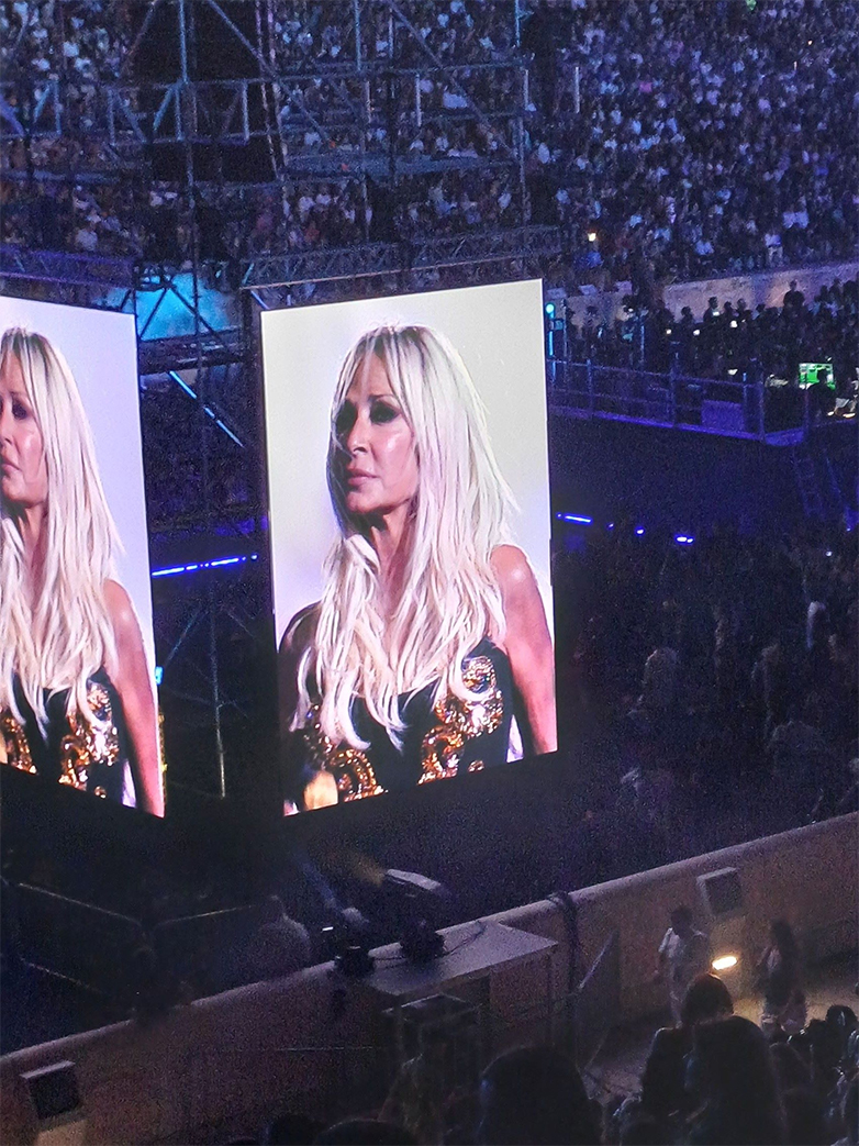 Στο πλευρό της είχε την πολυμελή μπάντα της, χαρίζοντας δυνατές ενορχηστρώσεις και ατμόσφαιρα υψηλής ενέργειας. Το show «ντύθηκε» με εντυπωσιακά οπτικά εφέ, καθώς και χορογραφίες με χορευτές επί σκηνής.