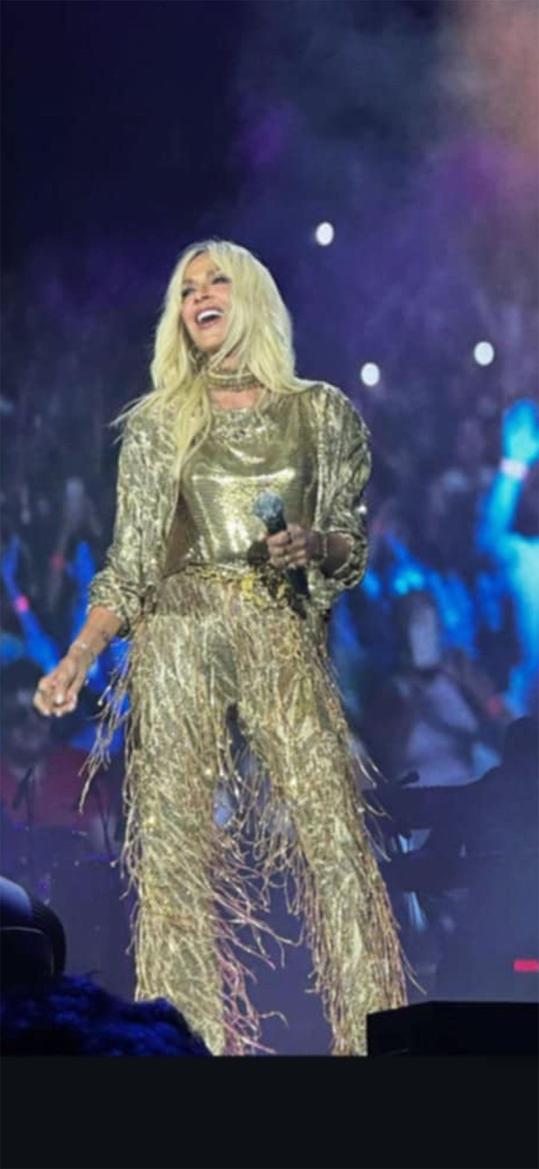 Στην πρώτη της συναυλία, την Παρασκευή 4 Ιουλίου η απόλυτη χρυσή της εμφάνιση ήταν μια ωδή στους θρύλους της παγκόσμιας μουσικής σκηνής, Freddie Mercury και Prince. Για την custom made δημιουργία δια χειρός Βρεττού Βρεττάκου, χρειάστηκαν 150 ώρες, 400.000 χιλιάδες κρύσταλλα, πολλή αγάπη και υπομονή.