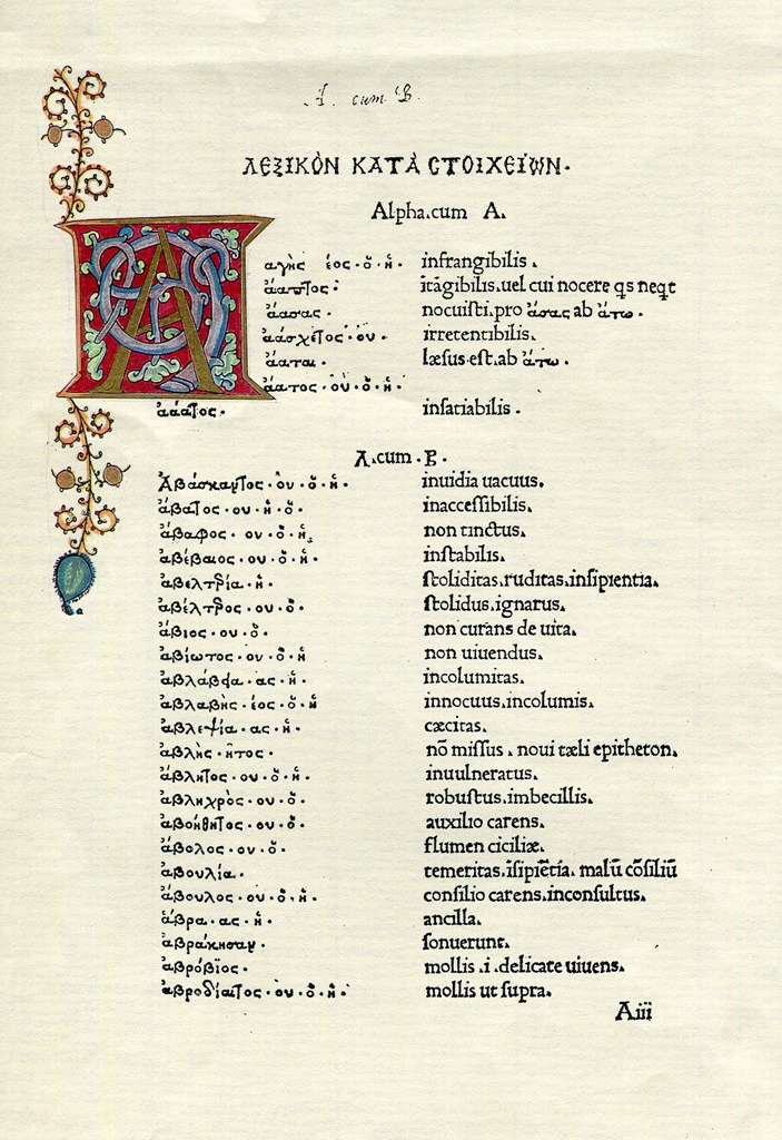Παράλληλα, πολλοί Βενετοί πατρίκιοι και λόγιοι μεταβαίνουν στην Κρήτη για να σπουδάσουν ελληνικά και καθώς στη Μεγαλόνησο, όπως και σε οποιαδήποτε ελληνική κτήση της Βενετίας δεν λειτουργεί τυπογραφείο, οι Έλληνες στρέφονται στη Βενετία για να εκδώσουν εργασίες τους. Έτσι, δύο ιερείς από την Κρήτη, ο Λαόνικος Κρης (Νικόλαος Καββαδάτος) και ο Αλέξανδρος Χάνδακος (Γεώργιος Αλεξάνδρου) επιχείρησαν να εδραιώσουν ένα τυπογραφείο στην οικία τους στη Βενετία, με σκοπό να κυκλοφορήσουν βιβλία για το ελληνικό μαθητικό κοινό, σε σχολεία της Κρήτης μάλλον. Με μια νέα οικογένεια ελληνικών χαρακτήρων που κόπηκε για λογαριασμό τους, εξέδωσαν το 1486 το Ψαλτήρι και τη Βατραχομυομαχία [εικ. 6], με μαύρη μελάνη το κυρίως κείμενο και ερυθρά τα σχόλια.