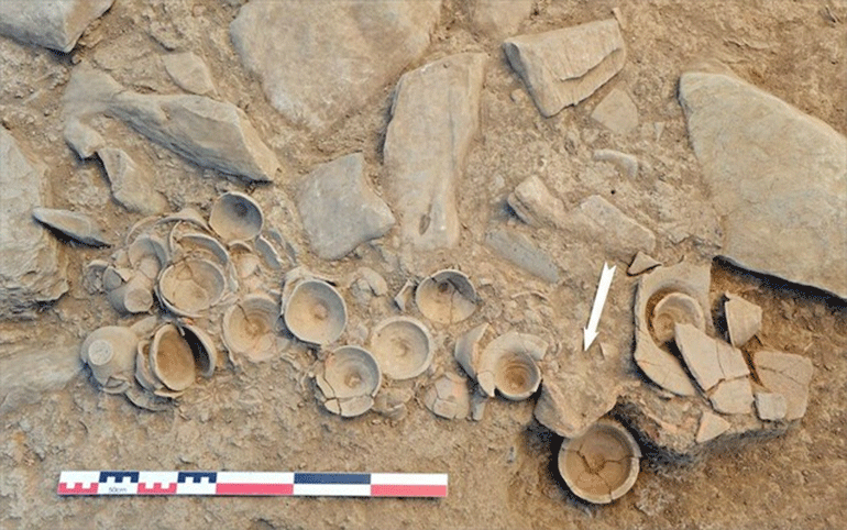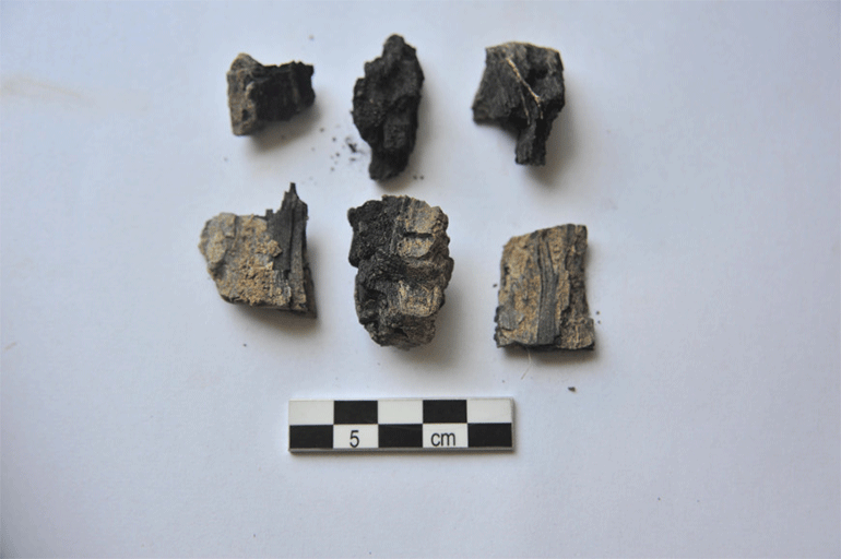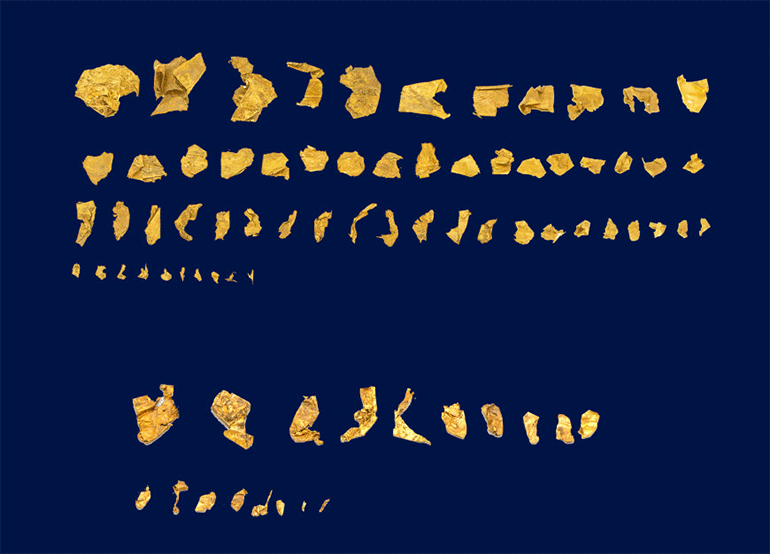 Την εφετινή ανασκαφή συνόδευσαν ευρήματα-εκπλήξεις, όπως η εύρεση (κάτω από το λίθινο στρώμα βωμού που είχε εντοπιστεί το 2019 στο λεγόμενο Συγκρότημα Ι) ενός τμήματος καμένου ξύλου, «στο οποίο ήταν είτε προσκολλημένα είτε διεσπαρμένα γύρω από αυτό πλήθος από μικρά, χρυσά ελάσματα, συνολικά περί τα 90», ένα σύνολο που «δεν μπορεί να ερμηνευθεί διαφορετικά από την ύπαρξη ενός ξύλινου ειδώλου, ενδεδυμένου με λεπτά φύλλα χρυσού. Αντίστοιχα είδωλα με χρυσή επένδυση γνωρίζουμε από ελεφάντινα ειδώλια των Αρχανών και του Παλαικάστρου».