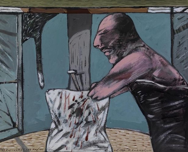 Έτσι εγκαινίασε στις αρχές Σεπτεμβρίου την έκθεση «Απόντες». Σε αυτήν παρουσιάζονται περίπου 120 έργα καλλιτεχνών όπως οι Ντίκος Βυζάντιος, Διαμαντής Διαμαντόπουλος, Νίκος Κεσσανλής, Χρύσα Ρωμανού, Ρ. Μπ. Κιτάι, Ζαν Ρουστέν, Φιλίπ Περό, Λεονάρντο Κρεμονίνι κ.ά.