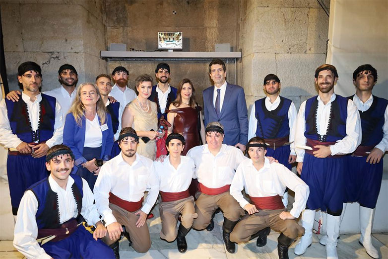 Στο podium ο αρχιμουσικός Λουκάς Καρυτινός αναπόσπαστο μέλος της μυσταγωγικής αυτής εκδήλωσης. Μοναδική και η παρουσία του Λυκείου των Ελληνίδων που απέδωσε τον χορό Συρτάκι σε μια μοναδική χορογραφία.