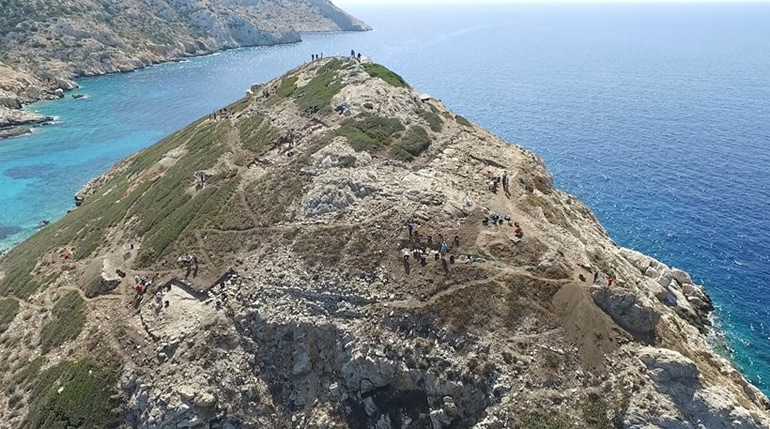 Η ερευνητική ομάδα, με επικεφαλής αρχαιολόγους από το Πανεπιστήμιο του Cambridge, την Εφορεία Κυκλάδων και το Ινστιτούτο Κύπρου, υπολογίζει ότι εισήχθησαν περισσότεροι από 1.000 τόνοι πέτρας. Το νησί ήταν χτισμένο από άκρη σε άκρη, δίνοντας την εντύπωση ενός ενιαίου μεγαλειώδους μνημείου που αναδύεται από τη θάλασσα. Το οικιστικό αυτό συγκρότημα είναι έως σήμερα το μεγαλύτερο γνωστό στις Κυκλάδες την εποχή εκείνη.