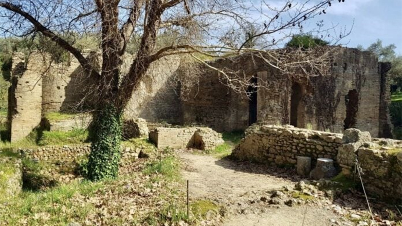 Άποψη του μνημείου από τα νοτιοδυτικά. Υφιστάμενη κατάσταση με υποστηλώματα