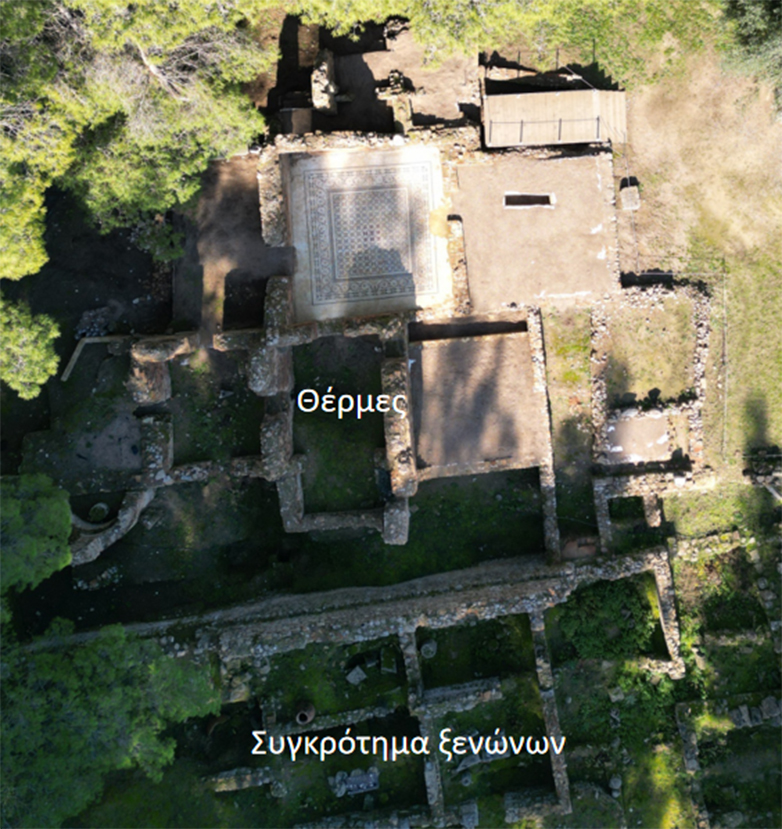 Το Υπουργείο Πολιτισμού, στο πλαίσιο του στρατηγικού σχεδίου που έχει εκπονήσει, από το 2020, για την αποκατάσταση και ανάδειξη των ρωμαϊκών μνημείων, εντός του αρχαιολογικού χώρου της Αρχαίας Ολυμπίας, δρομολογεί τη συντήρηση, αποκατάσταση και ανάδειξη του συγκροτήματος των θερμών, που βρίσκονται στην ανατολική όχθη του Κλαδέου, παραποτάμου του Αλφειού. Ο αρχαιολογικός χώρος της Αρχαίας Ολυμπίας τοποθετείται μορφολογικά σε μία περιοχή ήπιου ανάγλυφου, η οποία σχηματίζεται στη συμβολή του ποταμού Κλαδέου (παραπόταμου του Αλφειού) με τον Αλφειό ποταμό.
