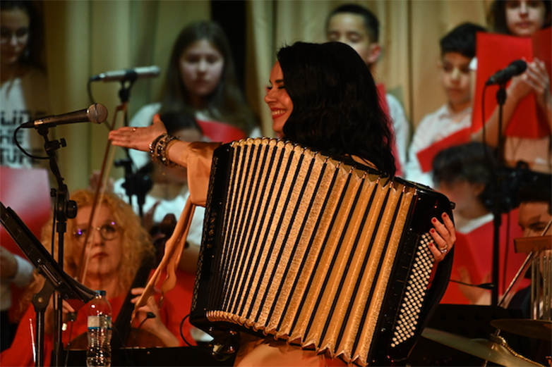 Η βιρτουόζος του ακορντεόν και το σύνολο εγχόρδων, αποτελούμενο από κορυφαίες γυναίκες μουσικούς της Συμφωνικής του Δ.Α., της Συμφωνικής της ΕΡΤ και της Κρατικής Ορχήστρας, καταχειροκροτήθηκαν παρουσιάζοντας -μεταξύ άλλων- και το «Por una cabeza» του Carlos Gardel (από την πασίγνωστη ταινία «Άρωμα γυναίκας»).