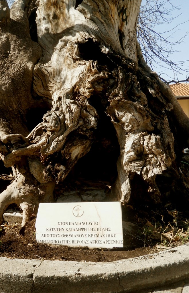 «Στο πρώτο, κρέμασαν οι Τούρκοι τον Ζήση Καραδήμο και τους γιους του Βασίλη και Δημήτρη, μετά από μάχη στην Αράπιτσα της Νάουσας, γεγονός για το οποίο υπάρχει ενημερωτική πινακίδα στο δένδρο. Επίσης, κάτω από το πλατάνι υποδέχτηκε ο βεροιώτικος λαός τον απελευθερωτή Ελληνικό Στρατό το 1912. Στον δεύτερο πλάτανο, όπου επίσης υπάρχει σχετική σήμανση, κρέμασαν τον Μητροπολίτη Αρσένιο κατά την κατάληψη της Βέροιας από τους Τούρκους» λέει ο κ. Μαντρατζής, διευκρινίζοντας ότι ως επίσημα αναγνωρισμένα Διατηρητέα Μνημεία Φύσης, στη διαχείρισή τους, προΐσταται το αρμόδιο Δασαρχείο, σε συνεργασία με τον Δήμο Βέροιας.