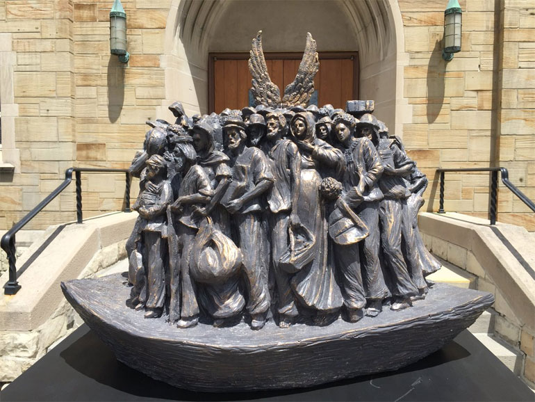 Η επιλογή των προσώπων που αναπαρίστανται είναι εκλεκτική: ένας Εβραίος που δραπετεύει από τη Γερμανία των Ναζί. Ένας άντρας από τη φυλή των Ινδιάνων Τσερόκι που βαδίζει στο μονοπάτι των δακρύων. Ένα μικρό αγόρι από τη Συρία το οποίο δραπετεύει από τον εμφύλιο που σπαράσσει τη χώρα του. Και άλλες και άλλοι. «Η ιδέα πίσω από το γλυπτό είναι ότι όλοι έχουμε έλθει από κάποιο άλλο μέρος» εξήγησε ο Schmalz. «Η βάρκα είναι σύμβολο του ταξιδιού, σε όλες τις ιστορικές περιόδους, ανθρώπων όλων των φυλών και θρησκειών».