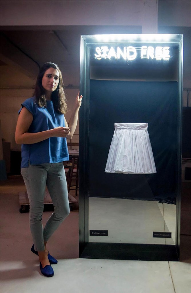 «Έτσι, από την έκθεση “Bedsheets – Τhe Duality of Freedom” στην πλατεία Συντάγματος το 2017, οδηγήθηκα συνειρμικά στην τωρινή διαδραστική εγκατάσταση “Stand Free”. Από τη δυαδικότητα της ελευθερίας και το σεντόνι στον εθνικοαπελευθερωτικό αγώνα και τη φουστανέλα», υποστηρίζει η εικαστικός και συνεχίζει: