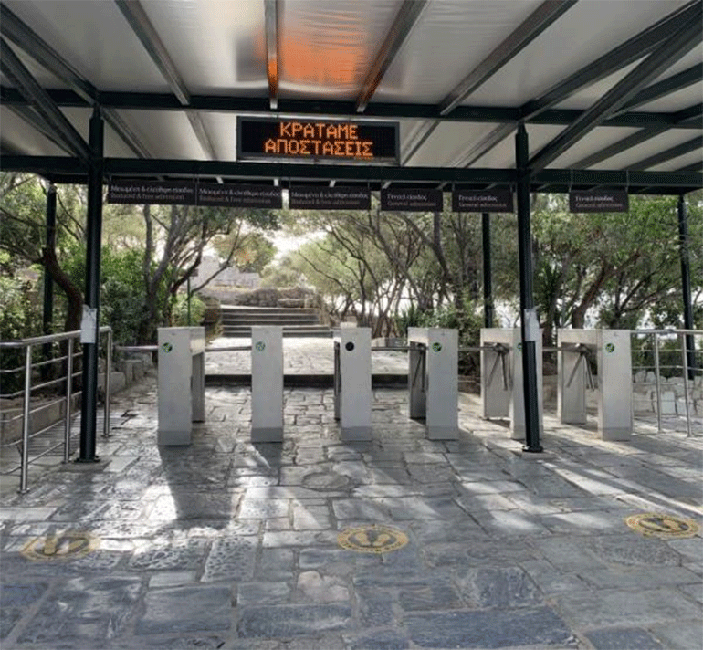 Σύμφωνα με την ανακοίνωση του ΥΠΠΟΑ, «εφαρμόζονται ειδικά πρωτόκολλα ασφαλούς χρήσης, προσαρμοσμένα στις ιδιαιτερότητες κάθε χώρου. Προβλέπεται η ακριβής μέριμνα για την απολύμανση των χώρων και για την προμήθεια απολυμαντικών ειδών. Επίσης, έχουν τοποθετηθεί διαχωριστικά πετάσματα, όπου είναι απαραίτητο, όπως για παράδειγμα στα Προπύλαια της Ακρόπολης, στο σημείο που συμπίπτει άνοδος και κάθοδος. Τα πρωτόκολλα που θα εφαρμοστούν ορίζουν όχι μόνο τον μέγιστο αριθμό επισκεπτών, αλλά και τις ασφαλείς διαδρομές περιήγησης και θέασης, όπως εισόδου και εξόδου, όπου είναι εφικτό».