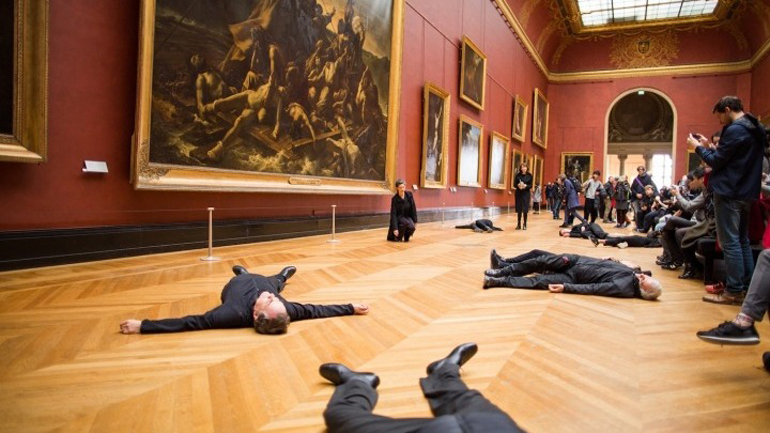 Αιφνιδιάστηκαν οι επισκέπτες του Λούβρου, την περασμένη Δευτέρα. Στην αίθουσα όπου εκτίθεται ο πίνακας του Ζερικό «Η Σχεδία της Μέδουσας» – για να ακριβολογούμε η ονομασία του πίνακα στα ελληνικά οφείλει να είναι «Η Σχεδία του “Μέδουσα”» καθώς πρόκειται για ονομασία καραβιού, αλλά έτσι έχει επικρατήσει – μια ομάδα ανθρώπων σωριάστηκαν στο πάτωμα ακριβώς μπροστά από τον πίνακα, επεκτείνοντας μέσα στην αίθουσα τη σκηνή του ναυαγίου. Ήταν οι ακτιβιστές «Libérons le Louvre (Ας απελευθερώσουμε το Λούβρο)», κάποιοι στο πάτωμα, κάποιοι άλλοι όρθιοι να απαριθμούν τα «κατορθώματα» του κολοσσού πετρελαίου και φυσικού αερίου Total, ενός από τους χορηγούς του μουσείου.