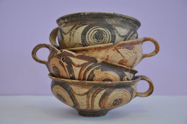 Όπως συνεχίζει η ανακοίνωση, «στους λάκκους αυτούς ερευνήθηκαν οι παλαιότερες ταφές, που συνοδεύονταν από πήλινα επιτραπέζια και αποθηκευτικά αγγεία, ορισμένα εκ των οποίων μνημειώδη, όπως ένα σύνολο από πιθαμφορείς του «ανακτορικού ρυθμού» με συμβολική διακόσμηση, εμπνευσμένη από τον φυτικό και τον θαλάσσιο κόσμο. Βρέθηκαν ακόμη χάλκινα μαχαίρια, εγχειρίδια και ξίφη καθώς και πολυάριθμες αιχμές βελών από χαλκό, οψιανό και πυριτόλιθο. Συνελέγησαν επίσης κοσμήματα, χάντρες περιδεραίων από ποικίλες πρώτες ύλες, περόνες και άλλα αντικείμενα γοήτρου, όπως σφραγιδόλιθοι».