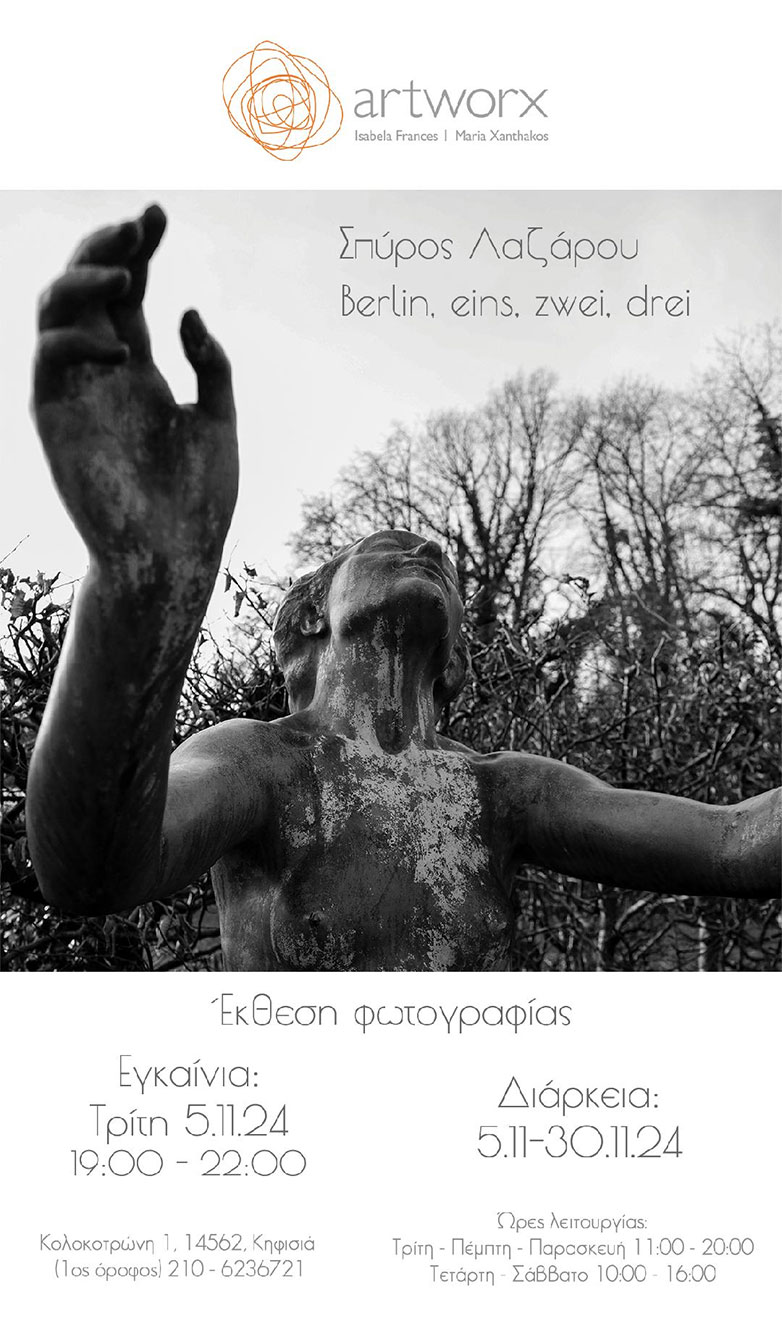 Το δικό του Βερολίνο, παρουσιάζει ο φωτογράφος Σπύρος Λαζάρου στη νέα ατομική του έκθεση με τίτλο «Berlin eins, zwei, drei», στην αίθουσα τέχνης artworx, σε επιμέλεια της Μαρίας Ξανθάκου και της Ιζαμπέλα Φρανσές.