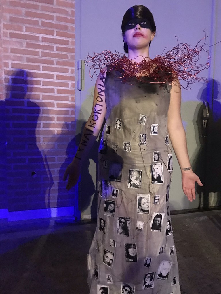 Επίσης, ένα άλλο θέμα, οπαδική βία, έδωσε την αφορμή στη δημιουργία της Σοφίας, αλλά και της Ελευθερίας Φιλοκώστα, από τη Λάρισα, που έρχεται κάθε χρόνο στην εκδήλωση, με τις δικές της προτάσεις. «Φέτος στο πλαίσιο του θέματος άσπρο- μαύρο έκανα κοστούμια με θέμα «ζωή – θάνατος και αγάπη», είπε.
