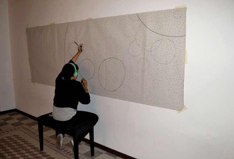 Αφετηρία στάθηκε το επιτόπιο καλλιτεχνικό εργαστήριο που πραγματοποιήθηκε τον Μάιο του 2016 με τη συμμετοχή φοιτητών της Σχολής από τα Τμήματα Ζωγραφικής, Γλυπτικής, Χαρακτικής και το Τμήμα Θεωρίας και Ιστορίας της Τέχνης.