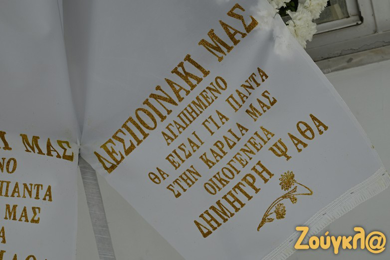 Στεφάνια έστειλαν μεταξύ άλλων, η οικογένεια του Δημήτρη Ψαθά και η ηγεσία του Υπουργείου Πολιτισμού.