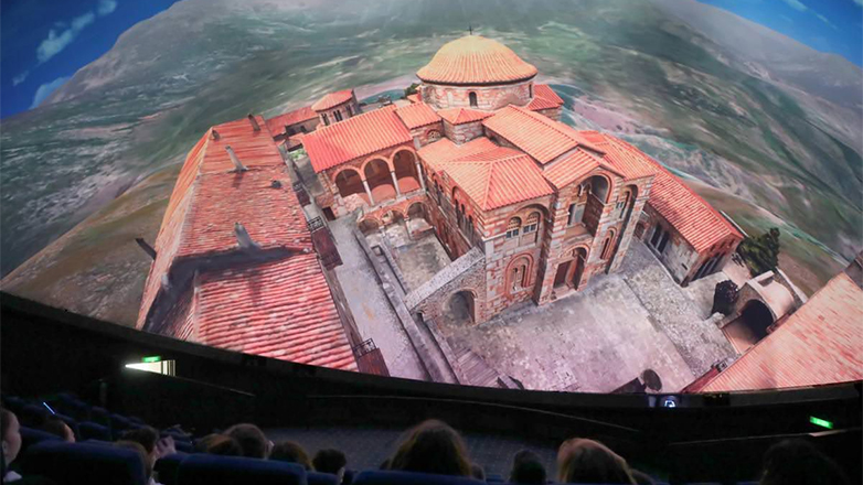 Η νέα διαδραστική παραγωγή του ΙΜΕ προβάλλεται στη «Θόλο» του Κέντρου Πολιτισμού «Ελληνικός Κόσμος». Η ψηφιακή του αναπαράσταση βασίζεται σε στοιχεία επιστημονικής έρευνας που αποτυπώνονται με σαφή και τεκμηριωμένο τρόπο. Αποτελεί μέρος του έργου «Ανάπτυξη Τρισδιάστατων Παραγωγών» για την Ιερά Μονή του Οσίου Λουκά στη Βοιωτία της πράξης «Ψηφιοποίηση Ιερών Κειμηλίων Ενοριακών Ναών», με αναθέτουσα αρχή το Ίδρυμα Ποιμαντικής Επιμορφώσεως της Ιεράς Αρχιεπισκοπής Αθηνών και ανάδοχο έργου το ΙΜΕ.