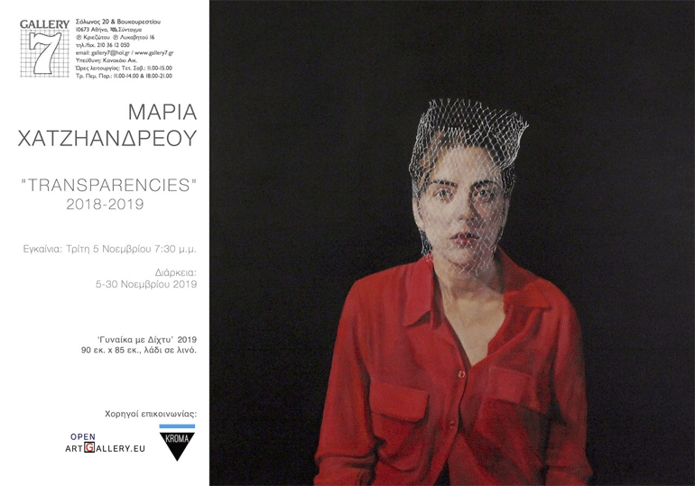 Η 11η ατομική έκθεση της Μαρίας Χατζηανδρέου με τίτλο «Διαφάνειες», θα εκτίθεται στην γκαλερί «7». Η έκθεση θα ανοίξει τις πύλες της για το κοινό από την Τρίτη 5 Νοεμβρίου.