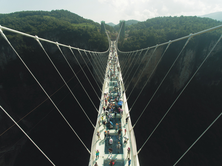 Η γέφυρα στο μεγάλο φαράγγι Ζανγκτζιατζιέ στην κινεζική επαρχία Χουνάν είναι η μακρύτερη και υψηλότερη γυάλινη πεζογέφυρα που κατασκευάστηκε ποτέ στον κόσμο. Θεωρείται ένα από τα πιο αντιπροσωπευτικά σύμβολα της σύγχρονης Κίνας και αποτελεί σημαντικό τοπόσημο παγκόσμιας ακτινοβολίας. Εκφράζει την εξωστρέφεια του νέου προσώπου της Κίνας, σε μια εποχή που η ασφαλής εξέλιξη της χώρας δεν επιτυγχάνεται πλέον μέσω της ανέγερσης οχυρωματικών έργων, όπως το ιστορικό Μέγα Σινικό Τείχος, αλλά μέσω της τεχνολογίας και της καινοτομίας.