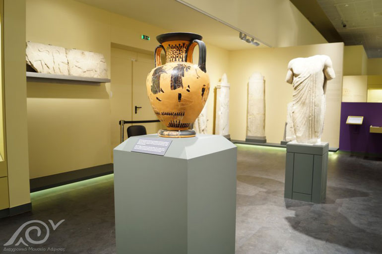 Σύμφωνα με την κ. Σδρόλια το άλογο και το ιππικό ήταν βασικό στοιχείο της εποχής ενώ η εκτροφή των αλόγων σχετίζεται τόσο με την προβολή της αριστοκρατικής ενασχόλησης, αλλά και με την πολεμική ετοιμότητα των Θεσσαλών. Επίσης στην ενότητα της Αρχαϊκής περιόδου οι επισκέπτες μπορούν να έρθουν σε επαφή με αξιόλογα ταφικά γλυπτά πολεμιστών και όχι μόνο, τα οποία κατασκευάστηκαν με στόχο να τους τιμήσουν για την προσφορά τους. Σημαντικό στοιχείο των εκθεμάτων σύμφωνα με την κ. Σδρόλια είναι και οι επιτύμβιες στήλες που αντικατοπτρίζουν τον ρόλο της γυναίκας. Μεταξύ άλλων υπάρχουν τεφροδόχα αγγεία, όπως επίσης και σιδερένια όπλα, αιχμές δοράτων, μάχαιρες, άλλα και χάλκινα και σιδερένια κοσμήματα.